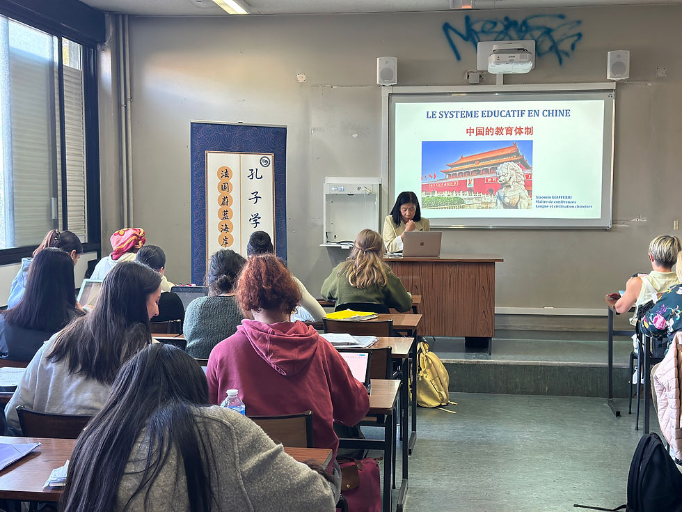 Avec clarté et pédagogie, elle a présenté l’organisation du système scolaire chinois, de l’école primaire à l’université, en expliquant le rôle central des examens et l’importance accordée aux études dans la Chine ancienne, ainsi que les évolutions du système éducatif. Son intervention a permis de mieux comprendre les spécificités culturelles et sociales qui influencent l’éducation en Chine aujourd’hui.